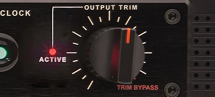 If you ever need to bring down the output level of the CONVERT-2, just turn the knob. When fully up, the volume control is bypassed for feeding a dedicated monitor controller (such as our MONITOR-ST). When engaged, the volume control lets you achieve exact output levels for many applications, for example, sending the analog outputs directly to a set of speakers and using the CONVERT-2 as a monitor controller.