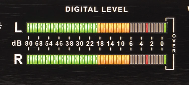 Our premium custom crafted digital meter gives you peak-over-average metering, typically found in expensive outboard mastering meters. The meter automatically calibrates to the chosen input reference level, giving you consistent visuals on every project. Our “3-word-over” indicator tells you when three consecutive samples have clipped, meaning you’re a breath away from violating industry standards for CD reproduction and are about to generate clipping distortion that would be audible in any digital file.